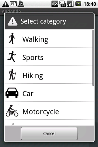 Lo mejor de AndAndo es que no necesitas ser ingeniero de caminos para grabar y reproducir tus rutas. Gracias a su intuitivo menú, basta con seleccionar tu medio de transporte e iniciar la grabación.